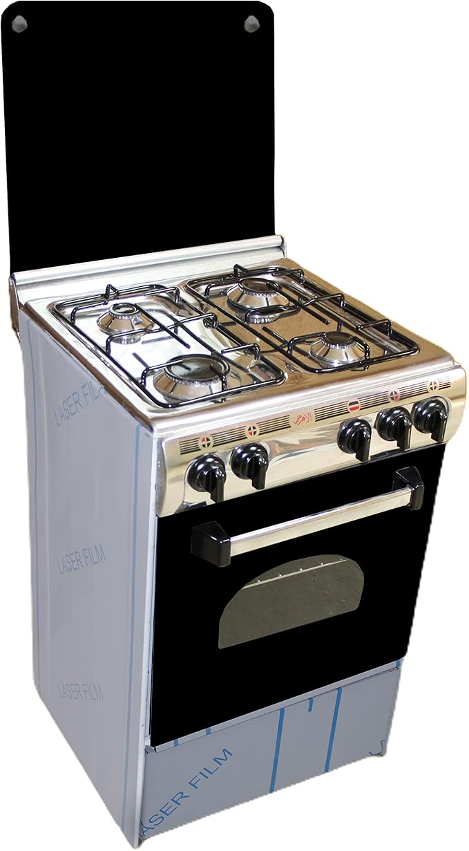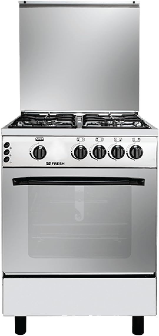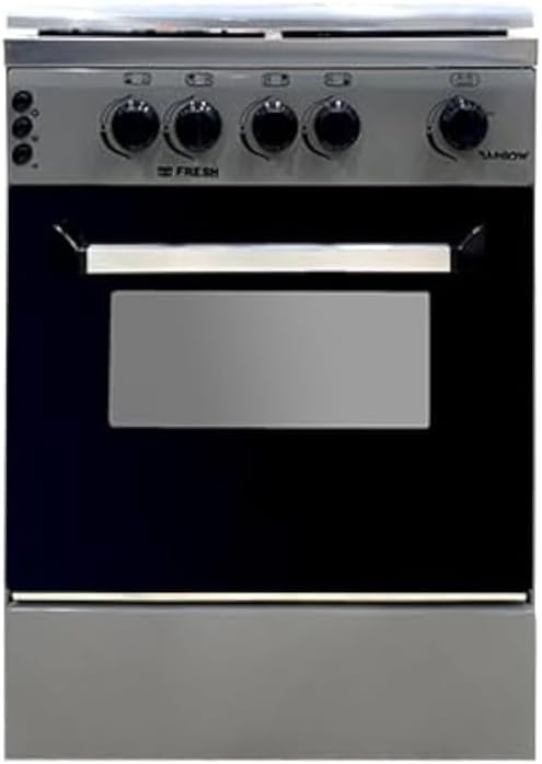 بوتجاز فريش 4شعلة امان فرن وشواية 60/60رنبو فضي سطح ستالس اشعال وشواية ولمبه